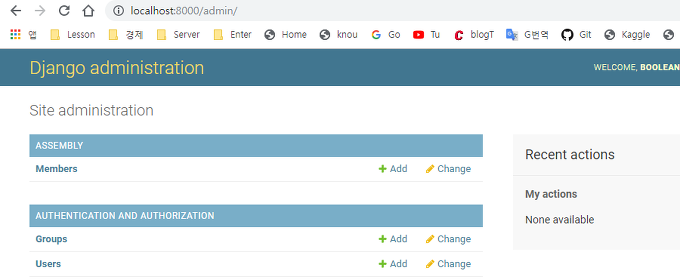 - 앱을 만들고 모델을 생성/등록하고 슈퍼유저를 등록한다.[자세히보기]