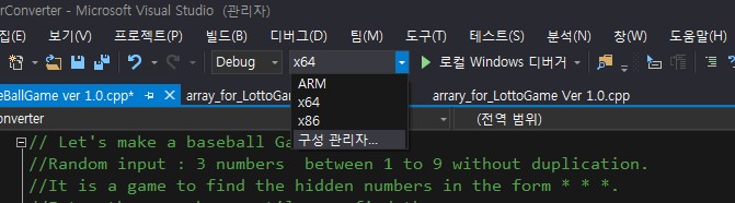 구성관리자 창이 뜨면 활성 솔루션 플랫폼 - x64를 선택하고 닫기를 선택한다.